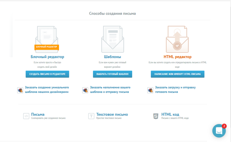 А для создания самих почтовых и СМС сообщений, сервисом предоставлены следующие инструменты