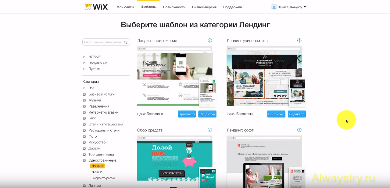 WIX — создать сайт бесплатно