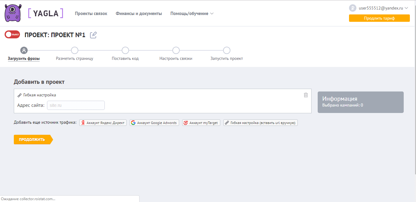 После этого, сразу же откроется личный кабинет, где будут отображаться все ваши проекты.