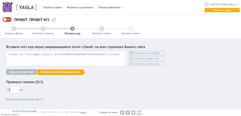 Потом вам нужно будет вставить специальный скрипт на свой сайт. После этого возвращаемся на страницу сервиса и запускаем проверку наличия кода.