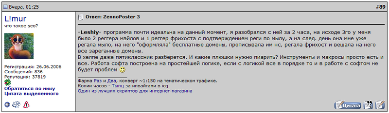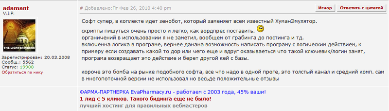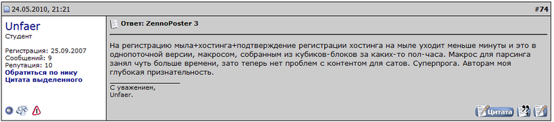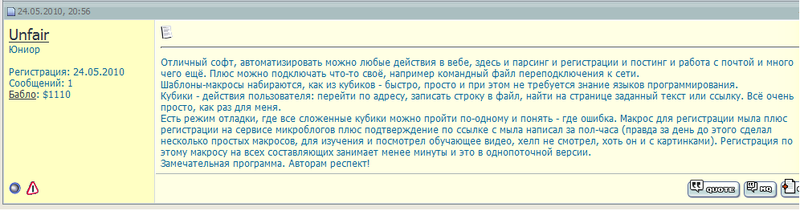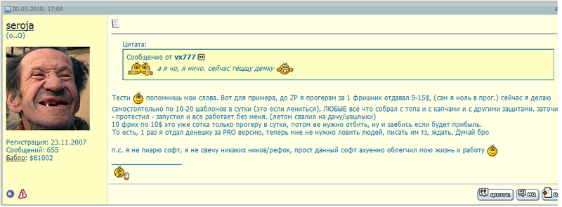 Это был один из отзывов пользователей программы Zennoposter, мы собрали с форумов еще немного отзывов для вашего ознакомления:
